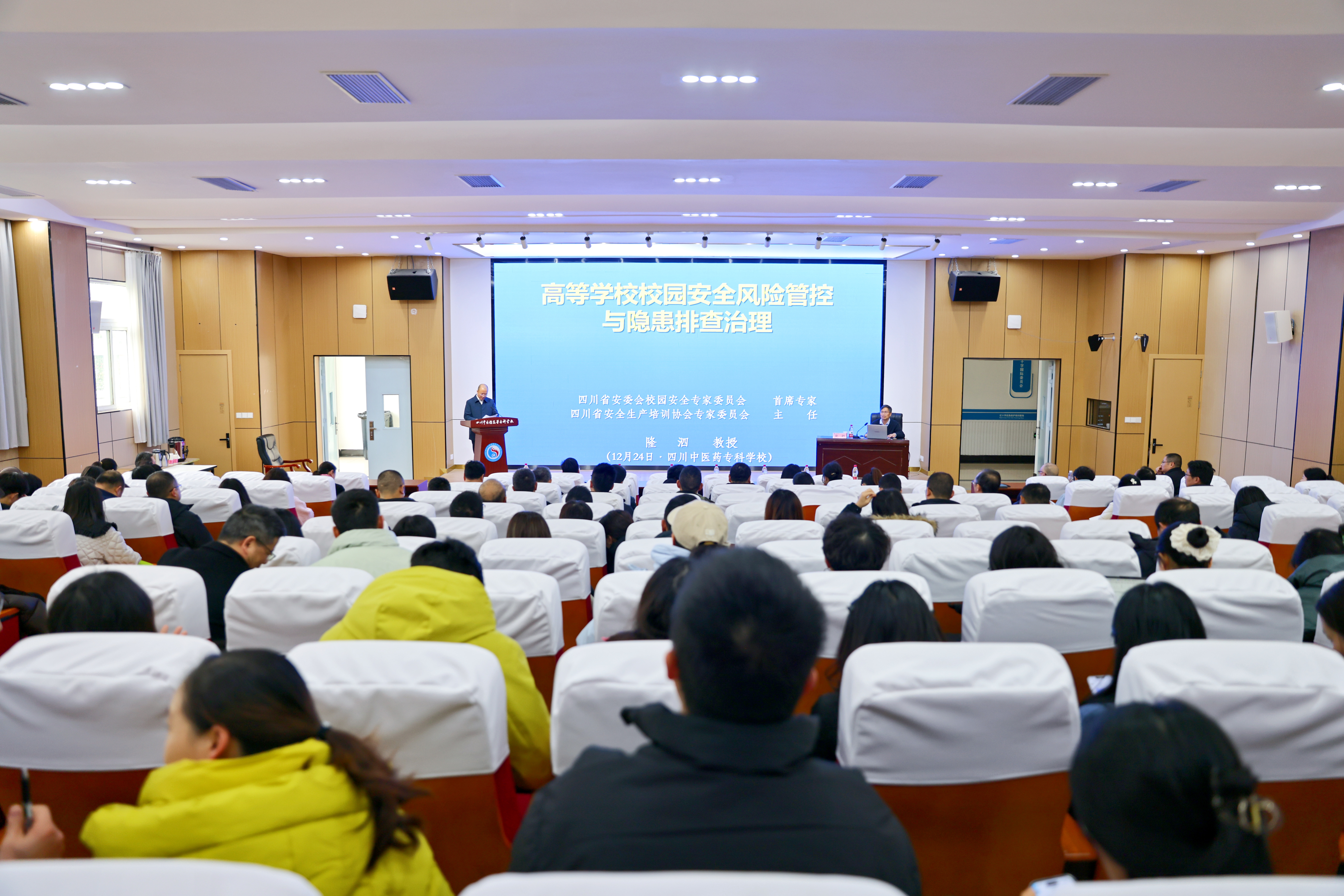 12月24日下午,我校组织召开安全工作专题会,聚焦校园安全风险管控与隐患排查治理,特邀四川省安委会校园安全专家会员会首席专家、教授隆泗到校作专题辅导。校党委副书记、校长李祥主持会议,副校长梁晓峰出席会议,全体管理干部、教研室主任、辅导员及实验室管理人员参会。