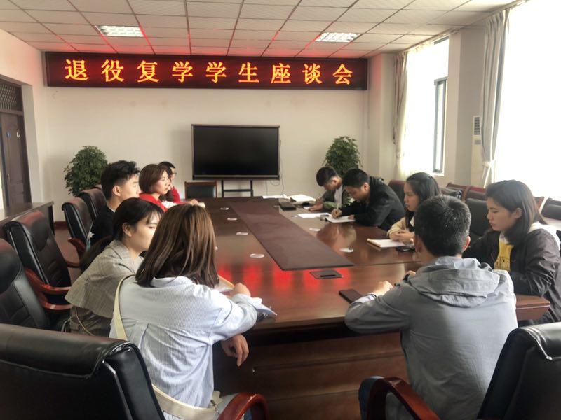 4月17日,我校在综合楼会议室召开退役复学学生座谈会,2017级、2018级11名退役复学学生代表参加了会议。